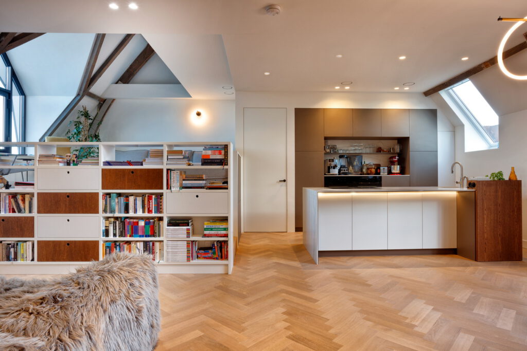 Het resultaat is een interieur waarin slimme indeling en materiaalkeuze zorgen voor een prettige leefomgeving, met maatwerkoplossingen die ruimte creëren en het dagelijks wonen ondersteunen.
