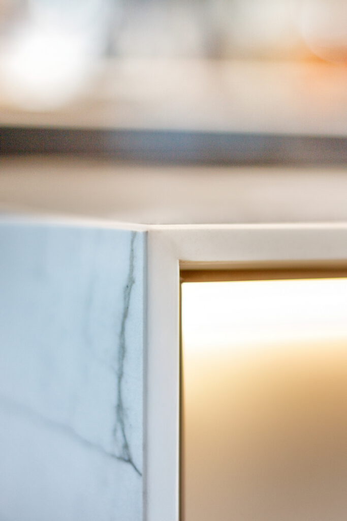 Door het zorgvuldig positioneren van maatwerk en het openhouden van zichtlijnen blijft het daglicht vrij door de woning stromen. In combinatie met subtiele verlichting ontstaat een interieur dat licht en ruimtelijk aanvoelt. Elk element is bewust geplaatst en draagt bij aan een woning waarin rust en comfort centraal staan.